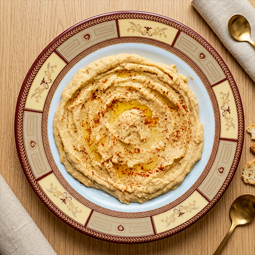 A smooth and creamy blend of chickpeas, tahini, olive oil, and garlic—served as a rich, flavorful dip perfect with bread or snacks.